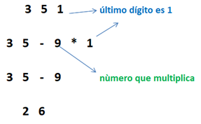 Como el número que resulta (351) es grande y no sé, si es múltiplo de 13, aplico nuevamente el proceso con el 351.